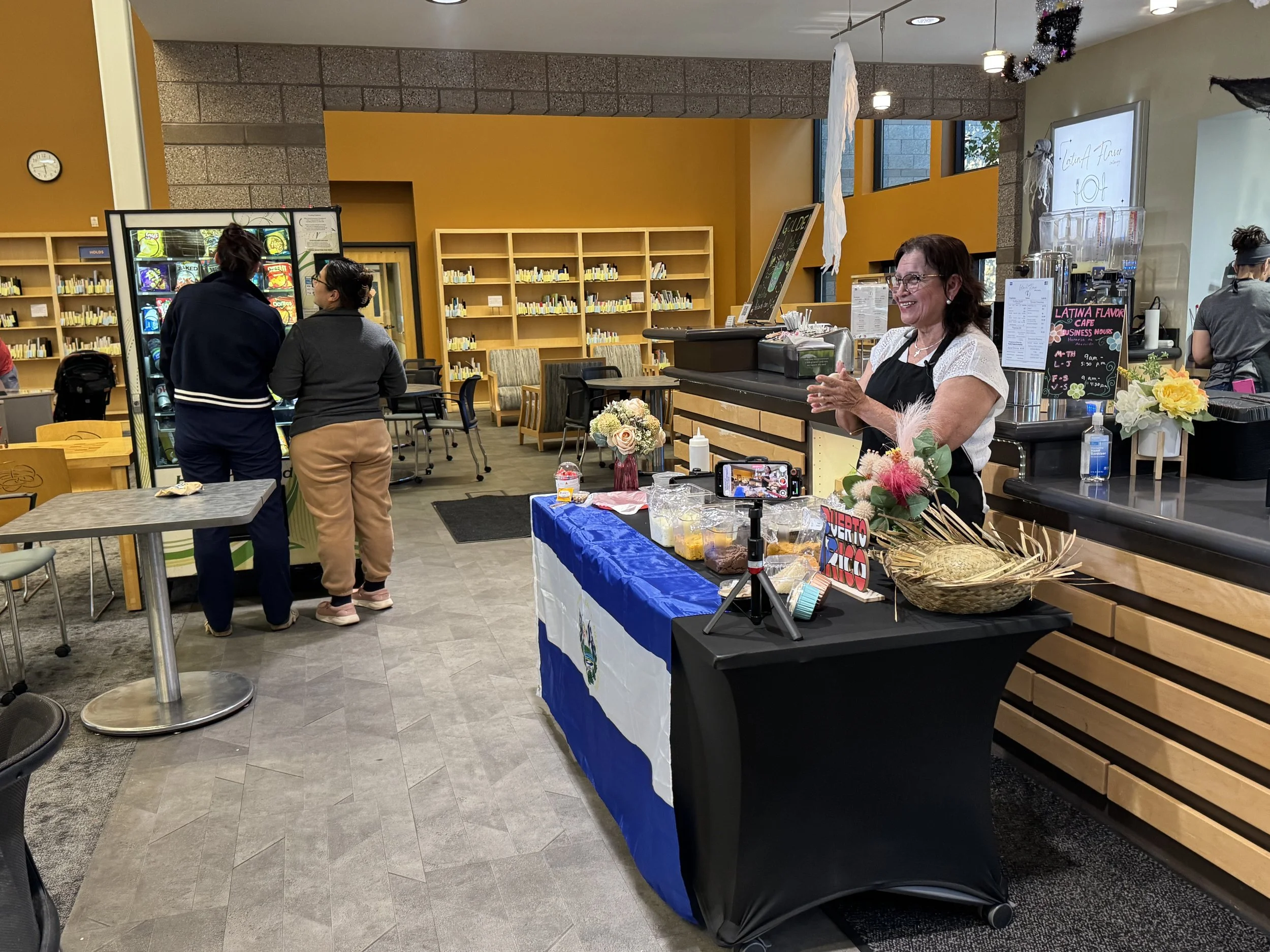 Founded in June 2025 by Karen, Odila, and Melba, our family-owned café brings you authentic pupusas, delicious tres leches, and refreshing aguas frescas in a warm, inviting atmosphere inside Anythink Wright Farms Library at 5877 E 120th Ave.